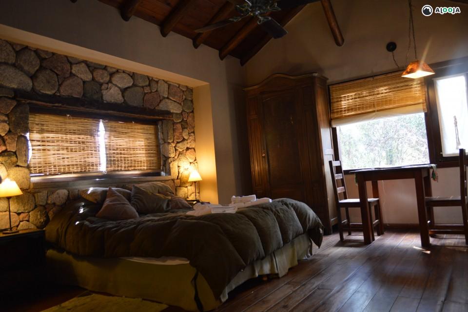 ** Dormi VERDE: ideal para parejas, amplio y cálido monoambiente decorado con piedra y madera, LED TV 32" por cable con reproductor de DVD, microondas, heladera bajomesada, cafetera electrica, tostadora eléctrica, pava eléctrica, vajilla básica, sommier matrimonial o dos de una plaza, antebaño y baño con hidromasaje triangular con ventanal con hermosa vista a las sierras. Mesa y dos sillas de madera . Aire acondicionado split frio-calor. Ventilador de techo