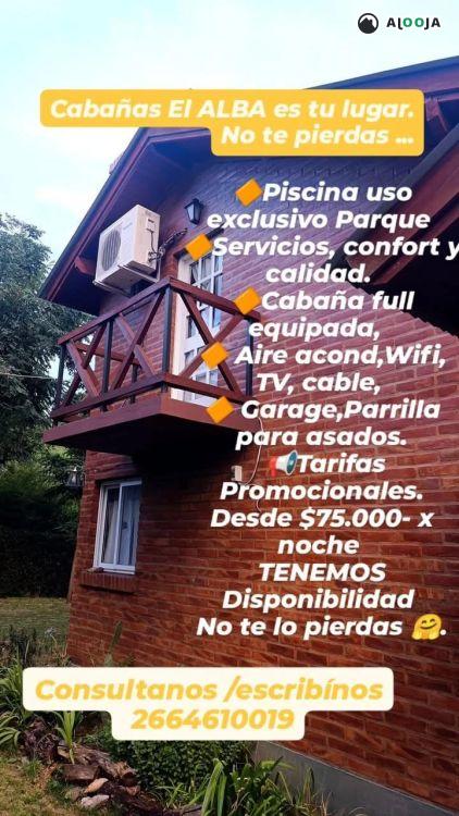 "Cabañas El Alba", ubicadas en Carpintería a 8 Km ( 5 minutos) de la Villa de Merlo, San Luis, las mismas tienen vista hacia la Sierra de los Comechingones y el Valle de Conlara. Nos encontramos a 900 mts. Sobre el nivel del mar permitiéndonos disfrutar de diversos paisajes y de una tranquilidad absoluta.