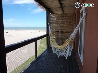 Apartamento sobre la playa con vista excepcional al mar, sin calle delante. Vista plena desde el living y desde la habitacion principal.