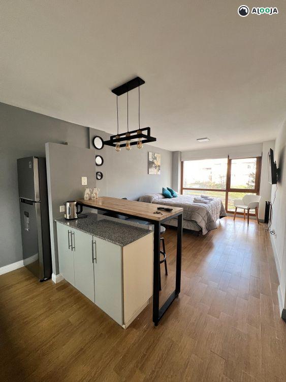 Monoambiente de calidad, diseño industrial, todos los servicios, comodidad y estilo combinados. Céntrico, con opción a cochera con reserva. En la puerta del edificio se encuentran todas las paradas de transporte publico de la ciudad. Bares y restaurantes en las cercanías. Supermercados a pocos metros. Cama King + sofá cama de una plaza o dos camas de plaza y media + sofá cama. Amueblamiento nuevo de calidad.